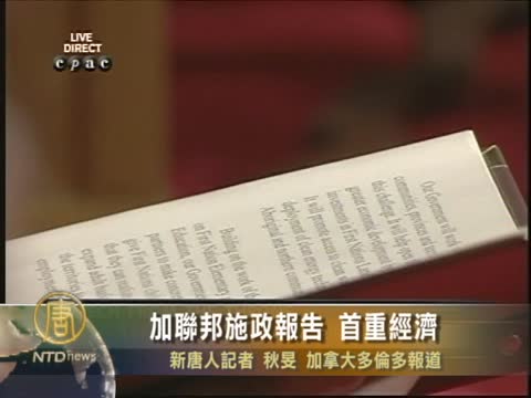 【新唐人2011年6月4日訊】加拿大第41屆聯邦政府6月3日公布了施政報告。報告強調,經濟仍然是政府工作的首要任務,同時承諾加強政府問責,以及在國際上維護人權。