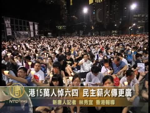 【新唐人2011年6月5日訊】星期六是六四22週年,香港支聯會在維多利亞公園舉行前主席司徒華逝世後的第一次六四燭光悼念晚會。民眾熱誠不減,民主薪火相傳,更多青少年與大陸人士參加,大會宣佈超過15萬人出席。