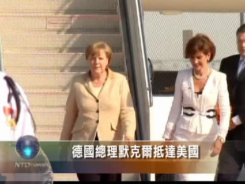 【新唐人2011年6月7日訊】六月六日晚間,德國總理默克爾到達美國華盛頓達拉斯機場,與美國總統奧巴馬會面。默克爾抵達後隨即趕往白宮,與奧巴馬一家人共進晚餐。在明天的正式會談之前,兩人先有一個私人會談。週二的官方接待將包括正式的儀仗隊和國宴。