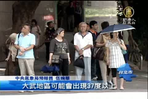 【新唐人亞太台2011年6月7日訊】7日上午才10點,台東大武又出現焚風現象,預估下午會上看37度,就連大台北地區也因為盆地地形加溫,溫度可能衝破36度,全台都是炎熱的天氣,氣象局預測,高溫會持續到8日星期三上午,直到午後才會有陣雨幫忙降溫度。