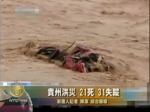 【新唐人2011年6月8日訊】6月6日凌晨1時許,中國貴州省望謨縣8個鄉鎮及與紫雲縣交界的部分鄉村出現特大暴雨,從而引發了洪澇災害,造成21人死亡,31人失蹤,直接經濟損失約13.4億元。
