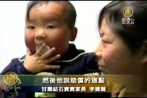 甘肅結石寶寶家長 李建龍:「(我孩子)從2010年開始,所有的檢查都是自己掏錢的,孩子不要說給治療,現在免費檢查都沒有,然後他說賠償的這點,我在網上看到過,好像聽哪一個孩子說動了手術找中國人壽,好像也是踢皮球,到處給他推來推去,他也不清楚到底是不是,能不能補償,反正到現在沒有給補償」