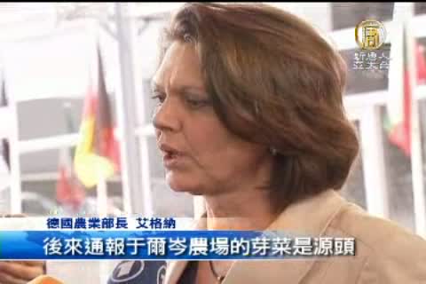 德國農業部長 艾格納(ILSE AIGNER):「我們開始說在黃瓜上發現大腸桿菌,但不是致命的這種類型。後來通報于爾岑(Uelzen)農場的芽菜是源頭,因為那兒發現了6個病例。」