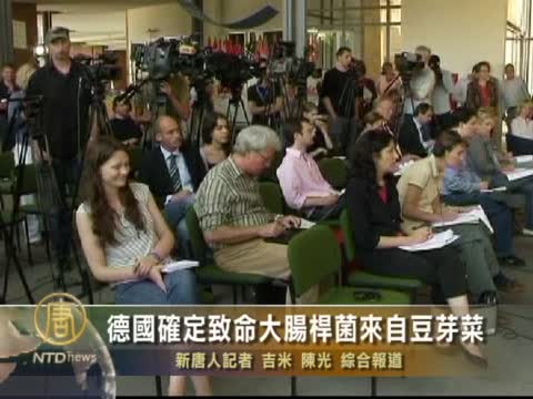 【新唐人2011年6月10日訊】德國負責流行病預防研究的權威機構羅伯特•科赫研究所星期五確認,受污染的荳芽是造成這次大規模出血性大腸桿菌疫情,致使30人喪生的病菌來源。