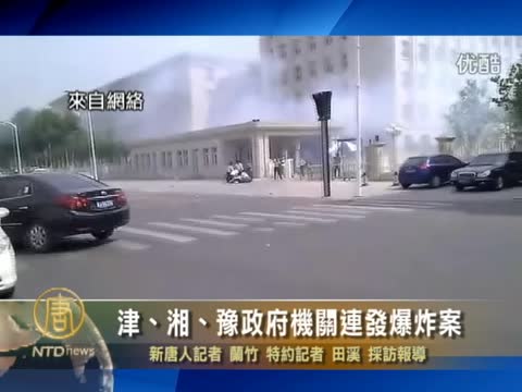 【新唐人2011年6月11日訊】中國近日在天津,湖南耒陽,和河南鄭州,分別傳出爆炸事件。最新一起是發生在天津市政府大門前,有人向市政府大樓投自製炸彈,至少三人受傷。武警事後迅速控制現場,市政府三緘其口,網貼迅速被刪。蘋果日報稱,這是中共建政62年來,首次發生直轄市一級權力機構被扔炸彈襲擊。