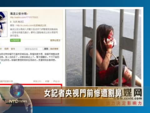 【新唐人2011年6月11日訊】中國媒體週五(6月10號)報導,北京警方證實,週四下午,一名姓林的女記者,從央視走出來時,被前來反應問題的一名遼寧籍男子,砍傷面目,其中鼻子被割,血流不止。警方說,當天上午,該男子曾經到過央視門口,要求記者幫忙解決問題,但被民警勸離。