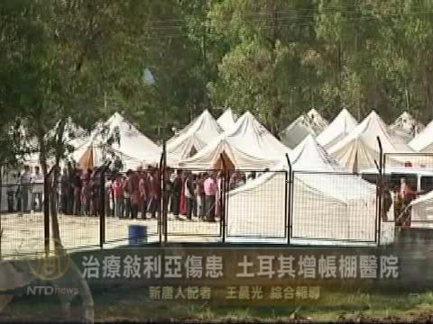 【新唐人2011年6月11日訊】星期六(6月11日),土耳其在靠近敘利亞邊境的哈塔伊省(Hatay)又增建了一座帳篷醫院,用於接納更多敘利亞北部的受傷難民。