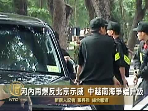 【新唐人2011年6月12日訊】中國和越南在南中國海地區的主權爭端不斷升級, 星期日(6月12日),大約100名越南人走上首都河內的街頭,第二次舉行反北京示威。