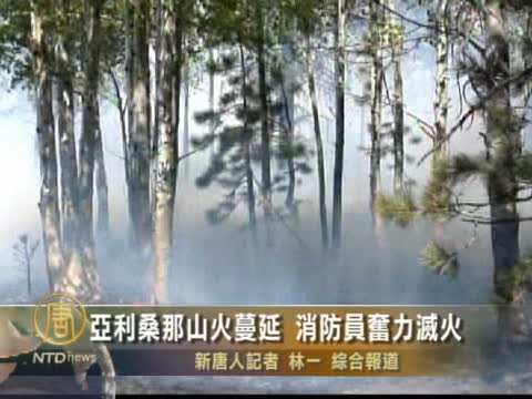 【新唐人2011年6月13日訊】6月11日,已經持續13天的美國亞利桑那州森林大火蔓延到了新墨西哥州邊境, 火勢覆蓋了43萬公畝的土地和森林。儘管消防人員奮力滅火, 目前只有大概百分之五的火勢在控制之中。