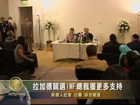 【新唐人2011年6月14日訊】星期天,法國財長拉加德在競爭擔任“國際貨幣基金組織”總裁方面得到了更多的支持,埃及、印度尼西亞和阿拉伯聯合酋長國,在都公開表示支持她。