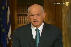 希臘總理帕潘德裡歐:“國家主要的問題是跟國債抗爭。我從生命中學會,為國家、為經濟、為人民、為了價值,進行奮鬥。我們必須接受為國家而行動的責任。”