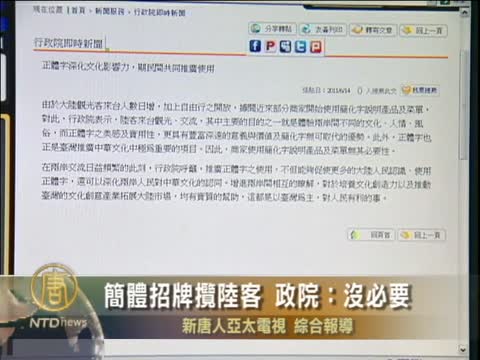 【新唐人2011年6月16日訊】搶攻中國客自由行的180億商機,不少賣場和商店特別張貼了簡體字標示,方便中國客瀏覽,不過,儘管行政院認為沒有必要,但許多商家,甚至是臺北市政府也將發行簡體字版的旅遊簡介,顯然和行政院不同調。