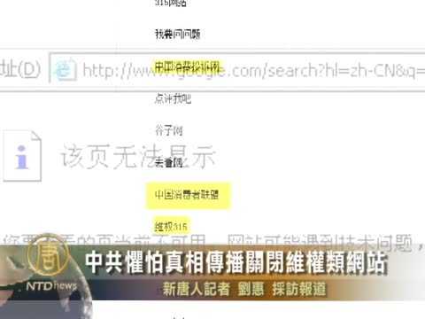 【新唐人2011年6月16日訊】最近,中共當局關閉55家所謂“從事非法網絡公關活動”的網站,其中包括20多家維權網站。有學者指出,中共此舉是爲了在它的建黨日前營造一個太平盛世的假象,但老百姓受迫害得聲音就很難發出來了。