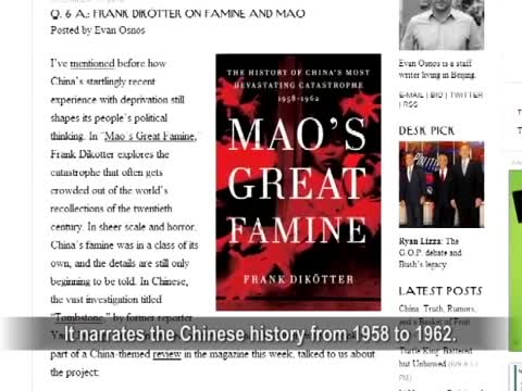 【新唐人2011年6月17日訊】英國《塞繆爾.約翰遜》大獎評委14號宣佈了六本英文書籍,入圍參選名單,由英國歷史教授所著的《毛時代的大饑荒》也入選。這本被認為“怵目驚心、前所未見”的著作被列在評委書單的前列。毛澤東雖然死了30多年了,討論毛時代的罪行在大陸仍是禁區。不過,學者茅于軾繼《把毛澤東還原成人》之後,再發表《對毛澤東的再認識》文章,請看報導。