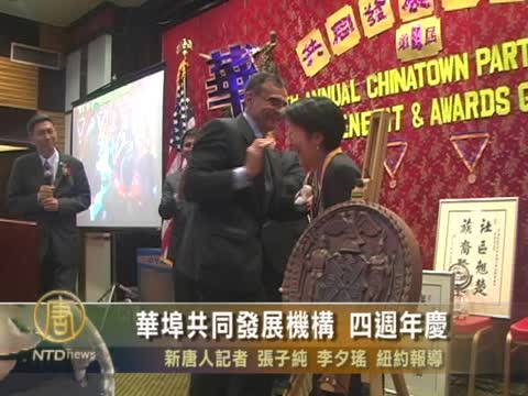 【新唐人2011年6月18日訊】6月16日晚,紐約華埠共同發展機構舉辦了“第四屆共同發展華埠夜”籌款表彰晚會,其中六位對華埠社區做出貢獻的人士獲得褒獎﹔800多位來自社區的商業、教育、政府、醫療、社務及華埠區民等人士參加慶祝。