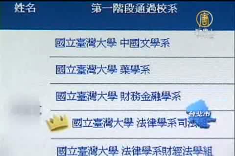 【新唐人亞太台2011年6月20日訊】今年大學甄選入學,有1萬多人都是「備取」,只能猜猜看自己會不會考上,台大資工系一名大三生,就寫程式架設了「交叉查榜」網站,1秒鐘就能秀出正、備取順序,提供學生參考。