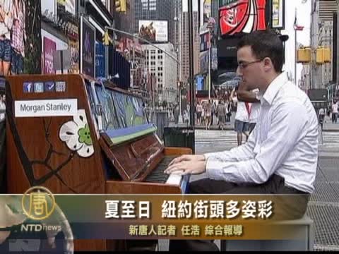 【新唐人2011年6月22日訊】6月21號(星期二)是2011年的夏至。這天,紐約的街頭非常熱鬧。88架大大小小的鋼琴,被安放在街頭,供民眾免費彈奏。而在時代廣場,數百人一起練起了瑜伽。