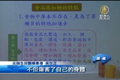 「我們的國人吃下很多不健康的食品,不但傷害了自己的身體,將來也增加醫療的支出。所以我們呼籲政府及有關機構,在食品安全這一部分,應該要加強把關。」