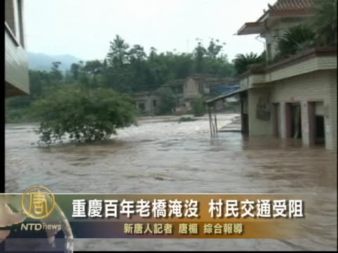 【新唐人2011年6月24日訊】在重慶銅梁縣有上百年歷史的馬灘橋,星期四被迅速上漲的洪水淹沒,一度只能看到橋上的欄杆,根據當地村民表示,這座橋是聯繫鄰近三個村莊的唯一道路,每天有上萬人通行。