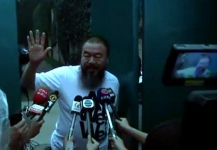 艾未未:“我不能作採訪,對不起,我就是見大家一下,沒辦法作…(採訪),因為你知道我現在的情況。”
