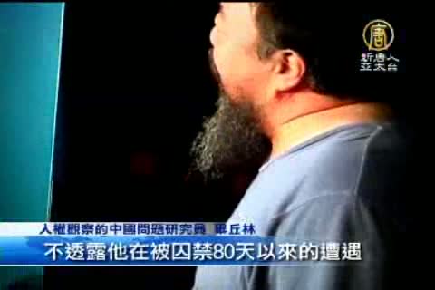 人權觀察的中國問題研究員 畢丘林:「中共的目的就是要讓他沉默,這個目的達到了,他保釋就意味著他無法接受媒體採訪,他可能被逼簽下保證書不透露他在被囚禁80天以來的遭遇,同時,當局也在傳遞訊息給其他藝術家和異議人士,那就是政府想甚麼時候逮捕你就逮捕你,所以不要批評政府。」