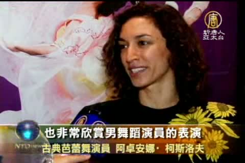 柯斯洛夫妻子古典芭蕾舞演員 阿卓安娜‧柯斯洛夫(Adriana Kozlov,classic ballet dancer):「演出非常出色,女舞蹈演員非常美麗,動作輕柔,流暢,也非常欣賞男舞蹈演員的表演,展現古代武士的勇猛和充滿活力的筷子舞,都非常棒。」