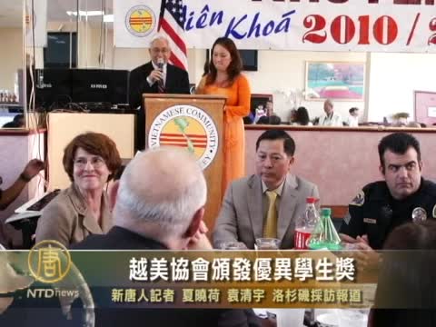 【新唐人2011年6月27日訊】越南僑團一年一度傑出學生獎頒獎典禮在洛杉磯pomona市舉行。本次活動表彰了從初中到博士學位不同年齡層的58位優異學生。