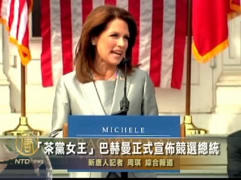 【新唐人2011年6月28日訊】美國保守派熱門人物、號稱“茶黨女王”的明尼蘇達州國會眾議員米歇爾.巴赫曼,週一正式宣佈競選總統。