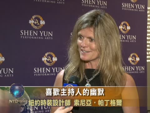 紐約時裝設計師Sonja Pettingill:"我喜歡神韻演出中古代與現代的交會,喜歡中西音樂的完美結合,喜歡主持人的幽默,喜歡演出中對布料的運用,是如此的飄逸和精美。"