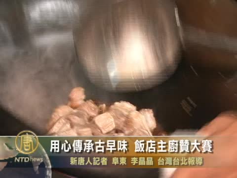 溫泉飯店行政主廚 張木成:「我們現在國內的比賽,都很重視那些裝飾,然後也很制式化了,我是第一次看到這種,有新唐人電視臺,這種很老式、很老式、很老式的菜。」
