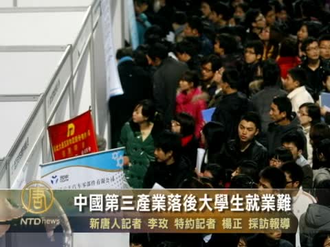 【新唐人2011年6月30日訊】專家指出,今年中國新增600多萬大學生畢業,但中國的第三產業即服務業發展落後,因此適合大學生的工作很少,目前中國大學生所學和社會需求不完全一致,導致就業困難。大學生就業藍皮書也指出,有60%的人認為目前的工作與自己的職業期待不吻合。
