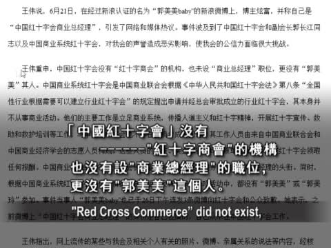 「中國紅十字會」28號下午召開媒體通報會,常務副會長王偉明確表示,「中國紅十字會」沒有“紅十字商會”的機構,也沒有設“商業總經理”的職位,更沒有“郭美美”這個人。