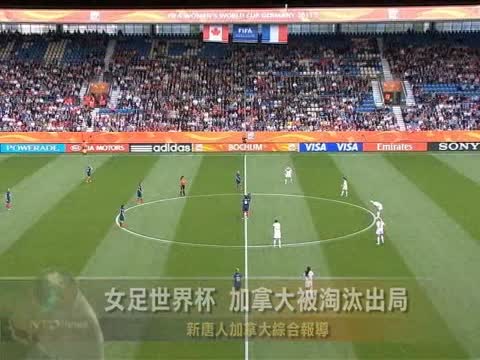【新唐人2011年7月1日訊】女足世界盃賽小組賽30日(週四)繼續進行,背水一戰的加拿大女足0-4慘敗給了法國隊,連輸兩場後,提前一輪被淘汰出局。