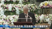 2017-03-31 12:49:55歡迎回來,前副總統李元簇 3月8日辭世,今天舉行追思祝福會,前總統李登輝上台發表談話表示,李元簇總能堅守立場,不計毀譽、不畏權勢,讚許李元簇是「最佳的幕僚典範」。總統蔡英文也親自頒發褒揚令,並舉行覆蓋國旗儀式。今天出席的包括林全、蘇嘉全、馬英九、連戰、吳敦義、蕭萬長、呂秀蓮,以及在野黨領袖宋楚瑜、洪秀柱、黃國昌等人。前總統陳水扁因為中監不放行,而沒有出席。