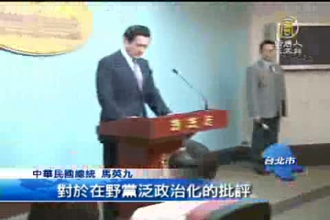 中華民國總統 馬英九:「挾怨報復,肅清異己,我要在此鄭重聲明,絕無此事,我也絕不容許這種事情,在中華民國發生,司法獨立是民主國家法治的重要防線,需要朝野全民共同努力,來維護這道防線,對於在野黨泛政治化的批評,我感到非常遺憾,時間會證明,對於司法獨立的尊重,我一路走來,始終如一,一路走去,也是始終如一」