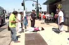 2014-07-02 12:37:34,多名大陸訪民,7月1日到紐約中領館前,聲援香港民眾,抗議中共暴政,突然遭到中領館保安用警棍推打,其中一人被送往醫院。