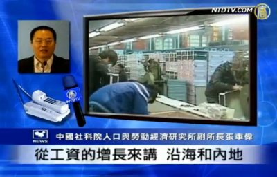 張車偉:「從工資的增長來講,沿海和內地相比呢優勢也不太明顯,這是出現民工荒的根源吧,現在這些企業也面臨轉型升級的要求,這些產業調整,重新的佈局也很有必要,在沿海可能發展不是很大的話,那麼應該向內地來轉移。」