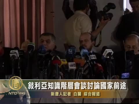 【新唐人2011年7月4日訊】敘利亞一些著名人士和知識階層星期日在首都大馬士革進行會談,討論如何解決敘利亞現在面臨的危機和未來的發展方向,他們把自己稱作這個國家在當局高壓下沉默的大多數人的代表。
