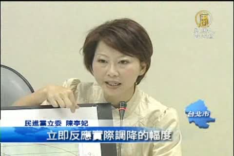 【新唐人亞太台2011年7月4日訊】國際油價跌,但是中油從今天(4日)開始,油價僅僅調降2毛錢,民進黨立委說,國際油價跌幅已經高達9%,怎麼中油只有調降3%,中間有6%的價差,而且去年法定盈餘124億,中油獲利竟多達239億,這也讓加油的民眾,要求中油應該把賺的錢吐出來,回饋全民。