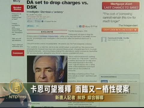【新唐人2011年7月5日訊】紐約郵報星期二報導,被控性侵女服務生的前國際貨幣基金總裁史特勞斯.卡恩,可能在兩個星期內被無罪釋放。不過事件並未就此平息,一名法國女作家已決定控告卡恩9年前對她性侵未遂。