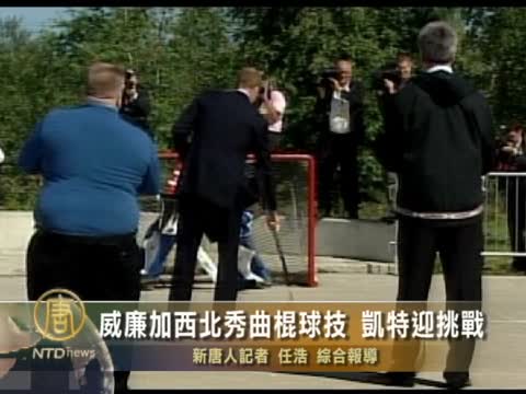 【新唐人2011年7月6日訊】7月5號(星期二),劍橋公爵夫婦在加拿大西北省的耶洛奈夫(Yellowknife),和一群少年玩街頭曲棍球(street hockey)。威廉王子再一次展示他的運動天賦,而凱特則接受挑戰,學習給孩子們發球。