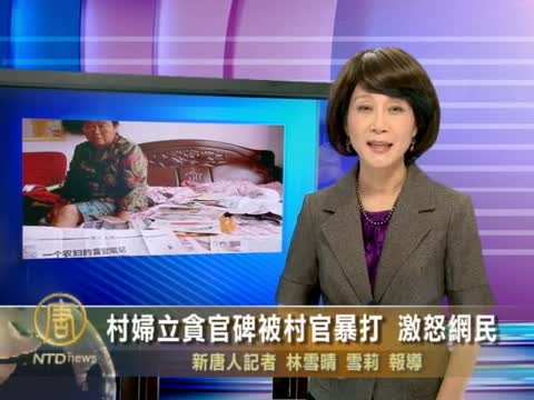 【新唐人2011年7月7日訊】山東省平度市農家婦女張秀芳在村口立“貪官碑”時,被村主任陳衛生等人毆打,這個過程被過路人用手機拍下來放到網上,震驚了網民。為甚麼這樣正義之舉還竟遭暴打?