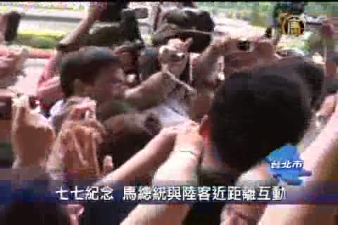 【新唐人亞太台2011年7月7日訊】總統馬英九今天(7號)到陸客密集的國父紀念館,參觀對日抗戰真相展覽,並發表演說,雖然談的是敏感的歷史議題, 但出了會場後,還是有大批陸客搶著與馬總統握手照相。