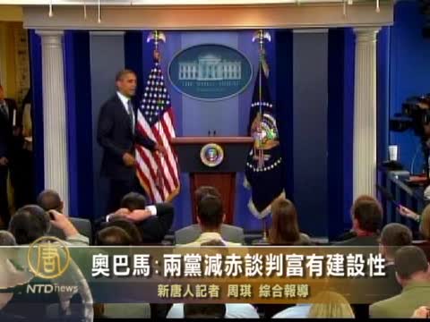 【新唐人2011年7月8日訊】美國總統奧巴馬7日表示,民主黨和共和黨就削減政府赤字和提高公共債務上限新一輪的談判富有建設性,但同時又承認,國會領袖們在一系列預算問題上仍有很深的分歧。兩黨將在週日再次會晤。