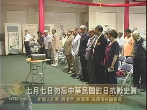 【新唐人2011年7月8日訊】7月7日在洛杉磯華僑中心舉辦「七七盧溝橋事變」以及「第二次世界大戰中、美、英同盟對日作戰勝利」紀念活動。指出八年抗戰,是中華民國軍民,在蔣中正委員長帶領下,奮起爭取自由和平的這段歷史。
