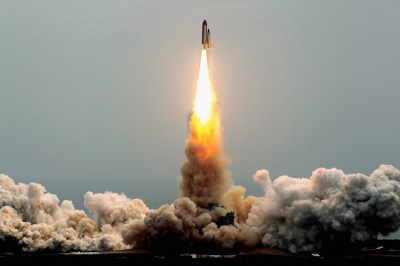 “倒數……3,2,1,”隨著點燃主引擎,美國最後一架航天飛機亞特蘭蒂斯號衝破濃煙和蒸汽,騰空而去。