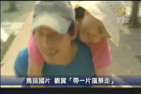 【新唐人亞太台2011年7月9日訊】新聞鏡頭轉回台灣,總統馬英九在星期五晚間,抽空前往電影院,欣賞國片「帶一片風景走」,電影由真人故事改編而成,內容描述一名丈夫帶著罹患小腦萎縮症的太太,徒步環島,故事主人翁黃智勇,8日晚間受邀與總統馬英九並肩而坐,一起觀看自己的故事。