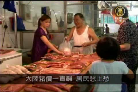 6月份大陸消費者物價指數(CPI)與上年同期相比上漲6.4%;漲幅最高的是食物類,高達14.4%。其中,最近一直居高不下 的豬肉價格,與5月份相比,上漲了11.4%。大陸民眾是愁上加愁。