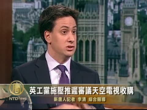 【新唐人2011年7月11日訊】英國反對黨工黨領袖艾德·米利班德星期天就默多克旗下《世界新聞報》竊聽醜聞繼續向卡梅倫首相施壓,要求暫停對默多克收購英國天空電視臺(BSkyB)計劃的審議。