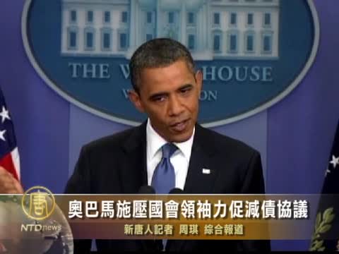 【新唐人2011年7月12日訊】星期一,美國總統奥巴馬在華盛頓記者招待會上表示,他正在敦促國會兩黨領袖儘可能達成最大減債協議,以減少美國目前高達1.4萬億美元的赤字.